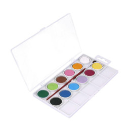 - 12 pastillas de distintos colores - Incluye un pincel escolar de la Serie 101 especialmente indicado para acuarela - Los colores se pueden mezclar en los pequeños recipientes mezcladores de la tapa del estuche - Pastillas redondas y compactas - Pueden lavarse fácilmente sobre la mayoría de tejidos
