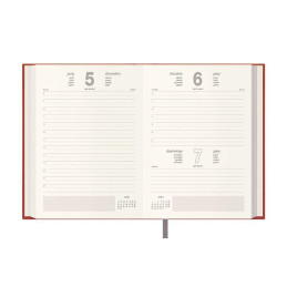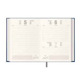 - Dietario encuadernado - Día página - Contiene 424 páginas - Cabecera en 4 idiomas - Cubierta en geltex con cartón contracolado - Cinta de registro - Formato 2/3