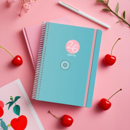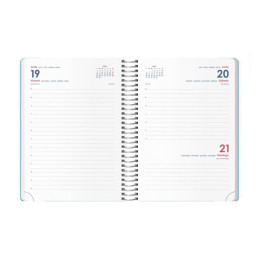 - Agenda de espiral - Perpetua, sin fechar - Semana vista - Cubierta de polipropileno - Portada personalizable - Uñero microperforado - Goma elástica - Espiral simple