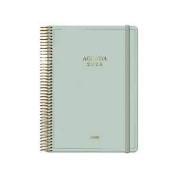 - Agenda de espiral - Perpetua, sin fechar - Día página - Cubierta de polipropileno - Portada personalizable - Uñero microperforado - Goma elástica - Espiral simple
