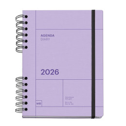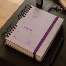 - Agenda de espiral - Perpetua, sin fechar - Día página - Cubierta de polipropileno - Portada personalizable - Uñero microperforado - Goma elástica - Espiral simple