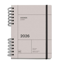 - Agenda de espiral - Día página - Cubierta de cartón 100% reciclado - Uñero microperforado - Goma elástica - Espiral simple - Papel reciclado