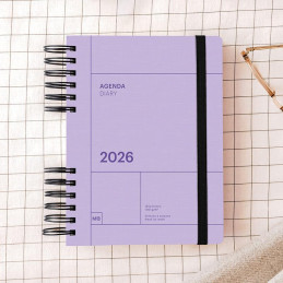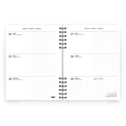 - Agenda de espiral Wire-O - Día página - Cubierta de cartón forrado - Uñero microperforado - Cierre goma plana - Espacio para notas
