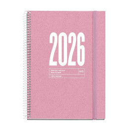 - Agenda de espiral - Semana vista - Cubierta de cartón 100% reciclado - Uñero microperforado - Goma elástica - Espiral simple - Papel reciclado
