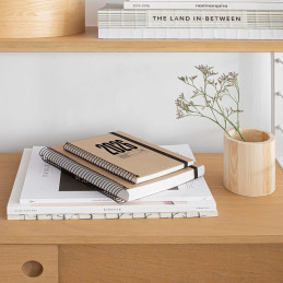 - Agenda de espiral - Día página - Cubierta de cartón 100% reciclado - Uñero microperforado - Goma elástica - Espiral simple - Papel reciclado