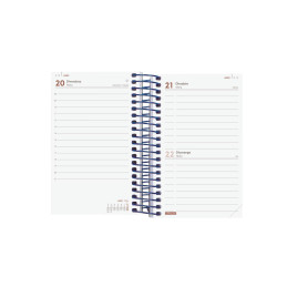 - Agenda de espiral Wire-O - Día página - Cubierta de cartón forrado - Uñero microperforado - Cierre goma plana - Espacio para notas