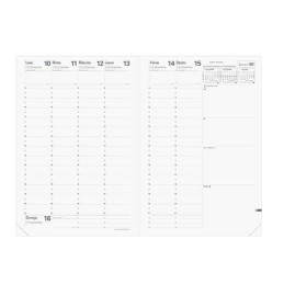 - Agenda encuadernada - Semana vista vertical - Contiene 144 páginas - Cabecera en 4 idiomas - Cubierta dura