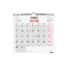 - Calendario de pared - Espacio para anotaciones - Espiral doble y colgador - Con mes anterior y posterior - Formato 34x32cm