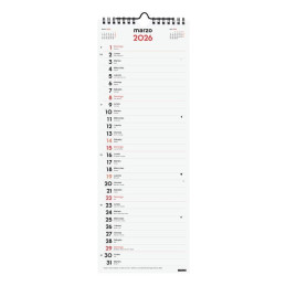 - Calendario encolado - Números grandes - Agujero para colgar - Hojas microperforadas - Con mes anterior y posterior - Formato 15x10,5cm