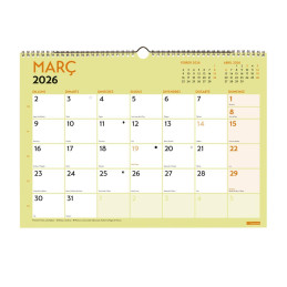 - Calendario de pared - Espacio para anotaciones - Espiral doble y colgador - Con mes anterior y posterior - Formato 26,5x24,5cm