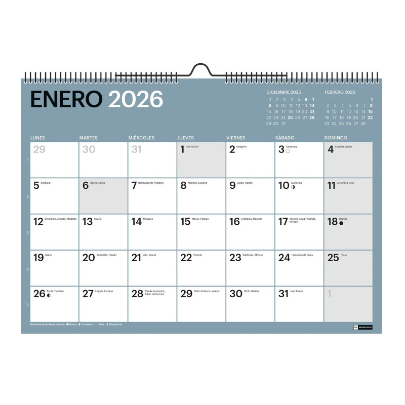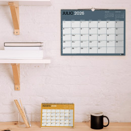 - Calendario de pared - Doble funcionalidad - Números grandes - Espacio para escribir - Espiral doble y colgador - Con mes anterior y posterior - Formato 43x31cm