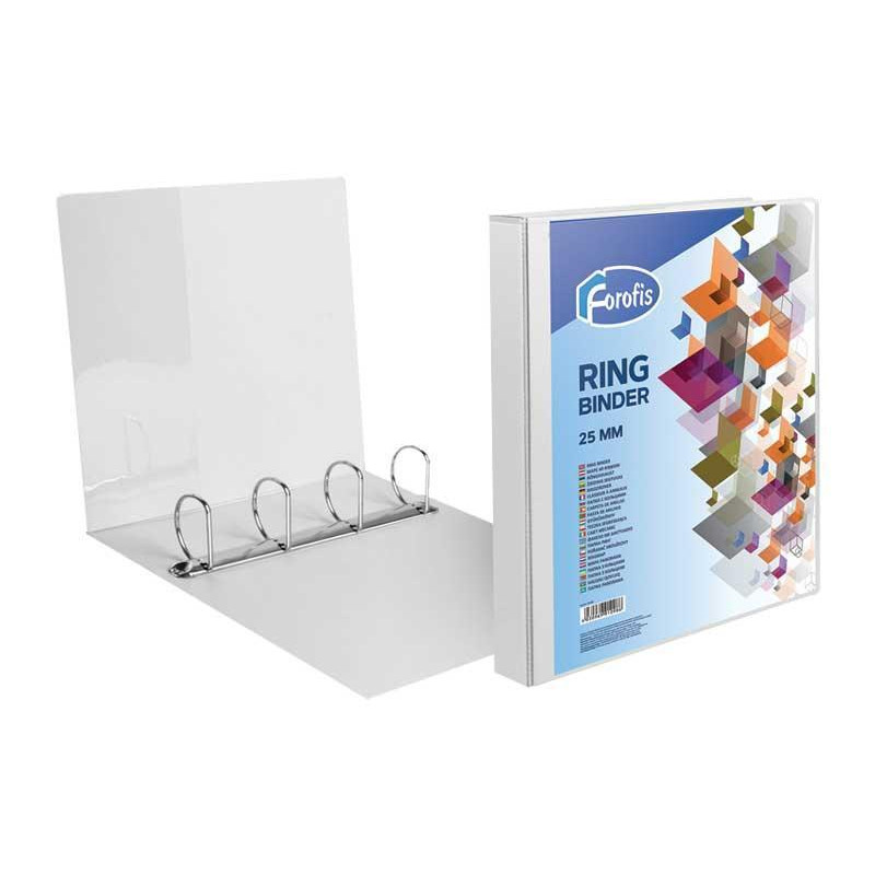 - Carpeta de anillas - Fabricada en cartón rígido - Forrado con papel y plastificado - Mecanismo de anillas 4-25mm. mixtas niqueladas - Formato folio