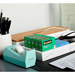 - Diseño moderno y funcional - Incluye la base antideslizante para sujeción segura en la mesa - La base antideslizante lavable reactiva la fuerza de sujeción - Incluye 3 rollos de 33m x 19mm de cinta invisible - Fácil de recargar