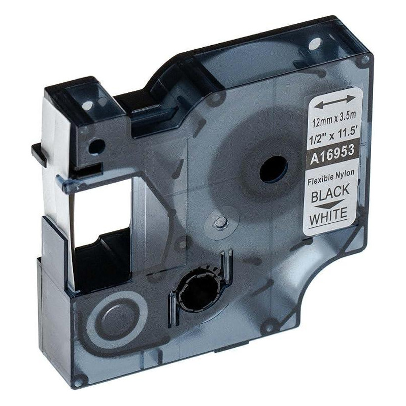 - Para imprimir etiquetas con una rotuladora electrónica - Texto negro sobre fondo blanco - Para un etiquetado general en superficies lisas y planas, crean etiquetas claramente legibles por mucho tiempo - Aguantan temperaturas extremas, luz solar, agua, sustancias químicas o la abrasión - 12 mm. x 8 m.