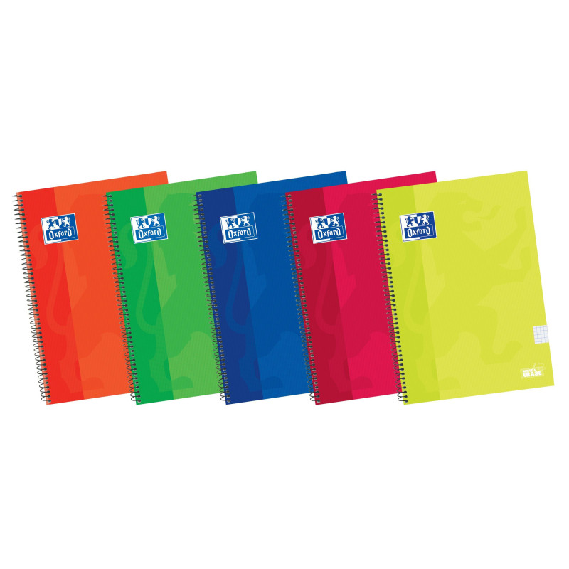 - Cuaderno de espiral - Formato Folio - Contiene 80 hojas de 90 gramos - Rayado 5x5 con margen - Tapas blandas de plástico - Colores surtidos - Certificado PEFC™