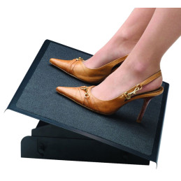 - Reposapiés - Ajustable a 3 alturas :105mm, 120mm y 135mm - Inclinable aproximadamente hasta 25º - Favorece la postura correcta del cuerpo - Sistema anti-deslizamiento superior e inferior - Medidas de la superficie: 56x34cm.