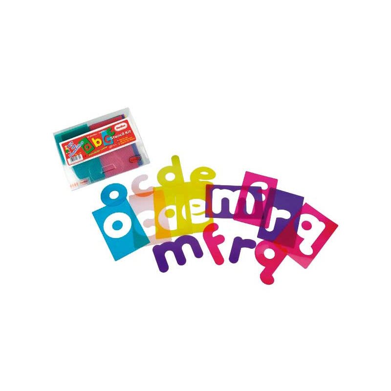 - Plantillas de plástico traslúcidas - Fácil trazo - Lúdico sobre las mesas de luz - 27 letras mayúsculas de colores - Formas redondeadas - Con maletín para guardarlas