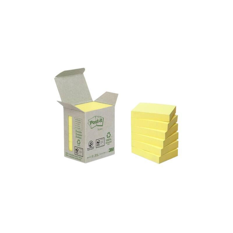 - Notas adhesivas recicladas - Con certificado Blue Angel - Caja con 12 blocs de notas - Blocs de 100 hojas cada uno - Tamaño: 50 x 40 mm - Color: amarillo - Presentadas en caja de cartón reciclado