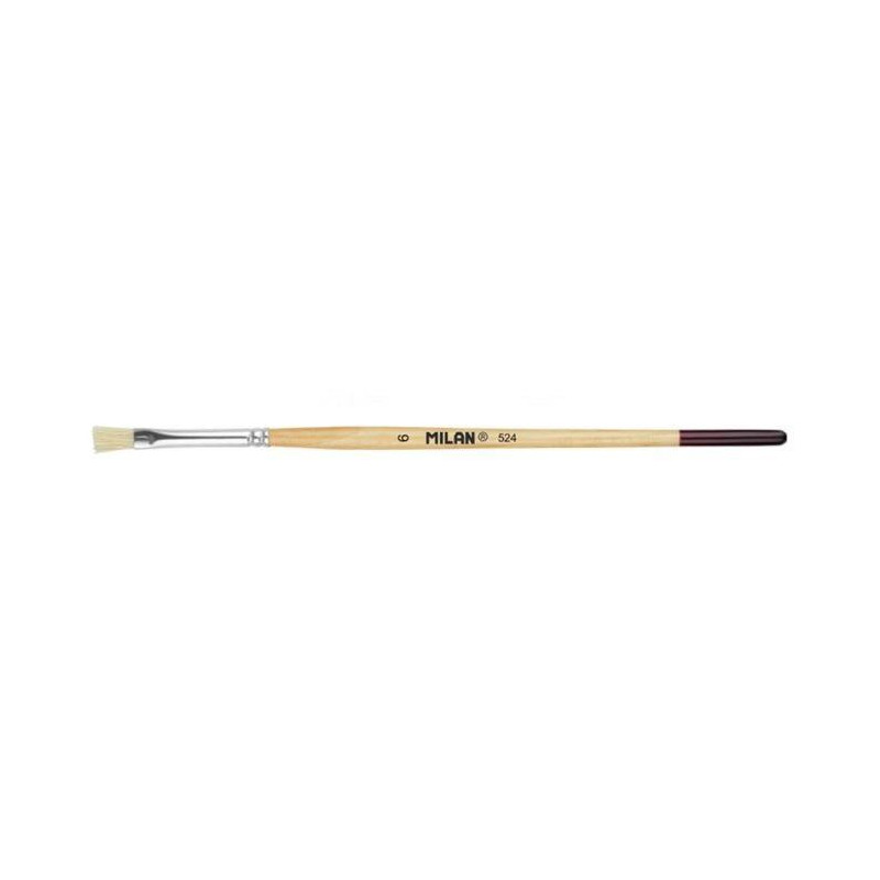 - Pincel plano con mango largo de madera - Barnizado en color natural y virola de aluminio - Composición: pelo natural de cerda Chungking - Adecuado para pintura al óleo y acrílico