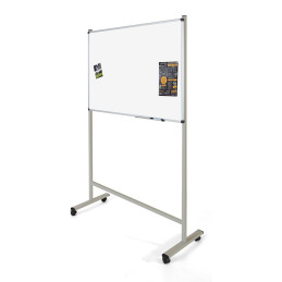 - Superficie magnética - Buena legibilidad y resistencia media a manchas de tinta, marcas de rotulador, arañazos y abolladuras - Suponen la solución ideal para espacios de pared limitados gracias a sus ruedas, que facilitan su transporte entre salas de reuniones - Pizarra móvil de doble cara - Bandeja para rotuladores - Altura total: 195 cm
