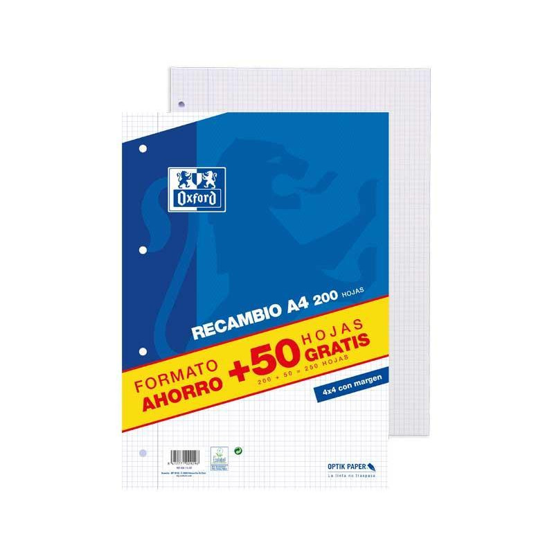 - Recambio - Formato: Folio con 4 taladros - Nº de hojas: 100