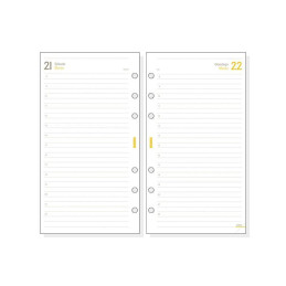 - Recambio anualidad - 2 días página - Uñero microerforado - 6 taladros - Para agendas de anillas - 12 meses (enero-diciembre)