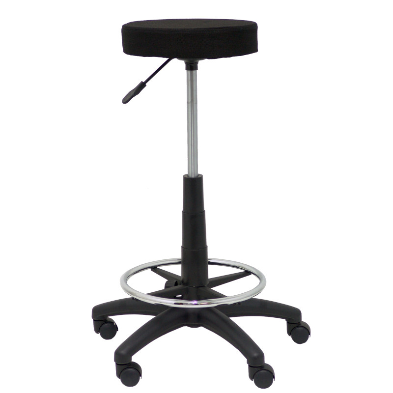 - Taburete operativo - Asiento regulable en altura por mecanismo de elevación - Espuma de poliuretano moldeada - Respaldo regulable en altura - Columna de elevación neumática - Bloque en cualquier posición - Base de poliamida con 5 radios - Aro reposapiés - Altura total 120-143cm