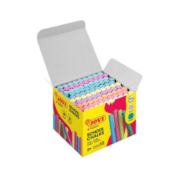 - Cubo de tizas redondas tamaño jumbo (Ø 9 x 80 mm) - Colores multicolor: Amarillo, verde, rojo, azul, naranja y lila - Cada cubo contiene 20 tizas - Tizas fabricadas con sulfato de calcio bajo en residuo, sin polvo - Aptas para el uso escolar