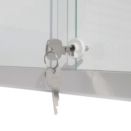 - Vitrina de anuncios para interior - Marco de aluminio adonizado - Fondo magnético - Puertas correderas de cristal de seguridad - Cerradura integrada con 2 llaves - Incluye kit de montaje - Dimensiones exterior: 95x68cm - Dimensiones interior: 91,2x64,2cm - Capacidad: 8 x A4